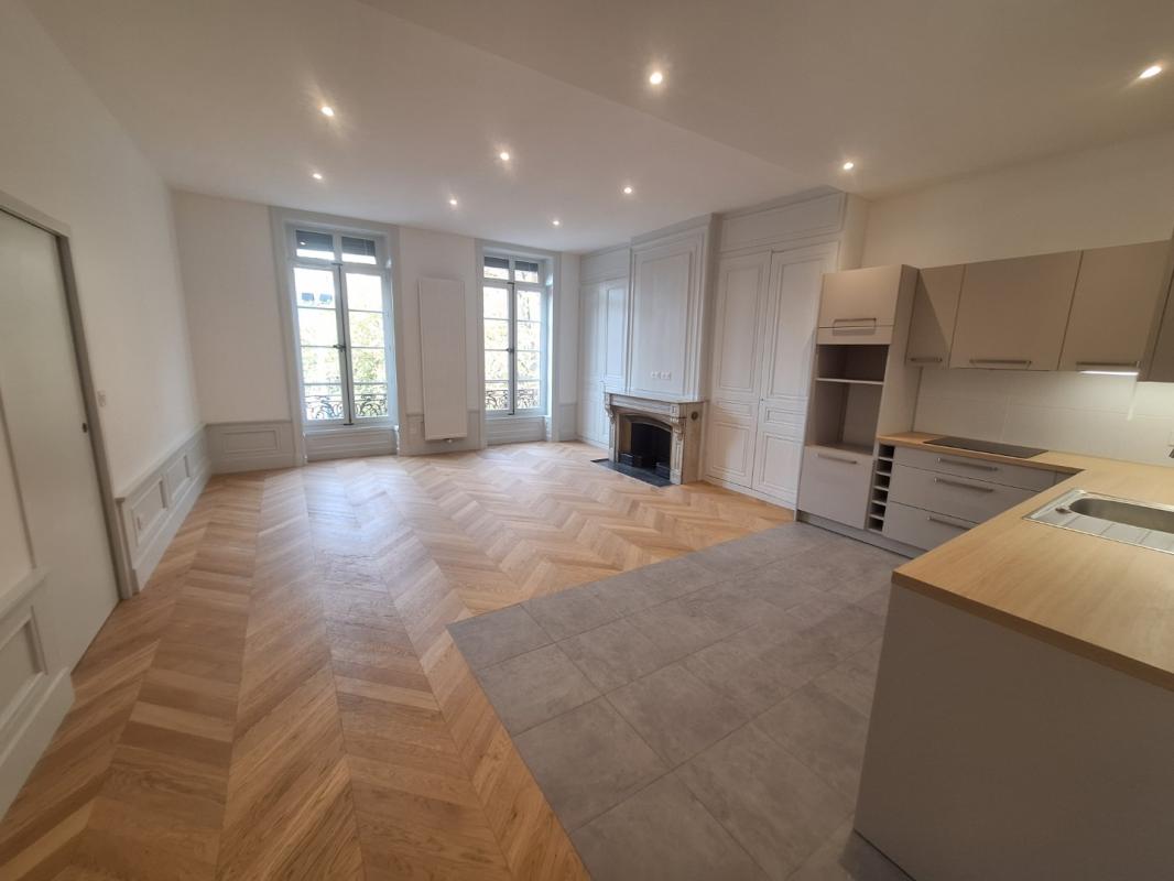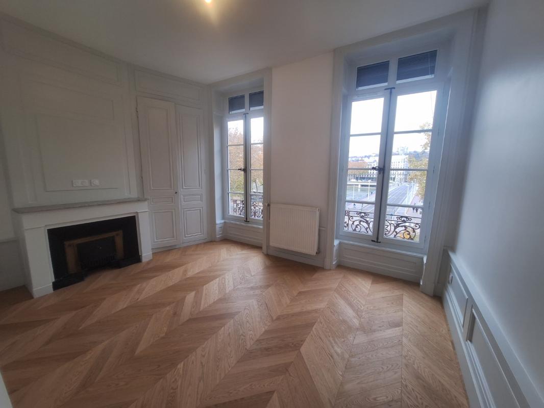 Quai Sarrail angle cours Lafayette, prestations de qualité pour cette rénovation d’un bel appartement de 91m² en 3ème étage avec ascenseur, offrant un beau salon en parquet , jolie vue sur les quais, cuisine ouverte meublée , équipée de plaques de cuisson et d’une hotte, 3 chambres, nombreux rangements, salle de bains et salle d’eau , chauffage gaz individuel